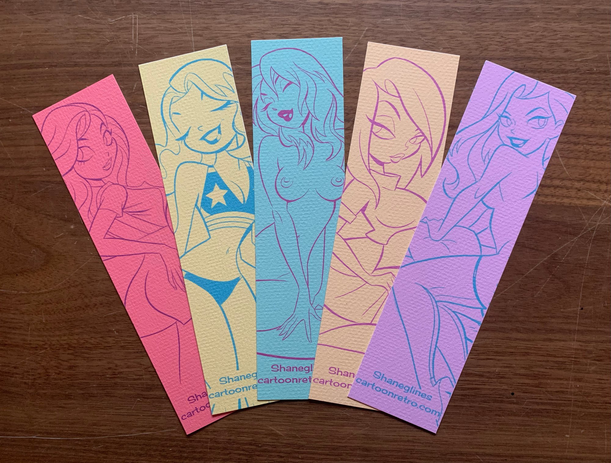 A collection of five bookmarks printed on 80lb acid free textured card stock.