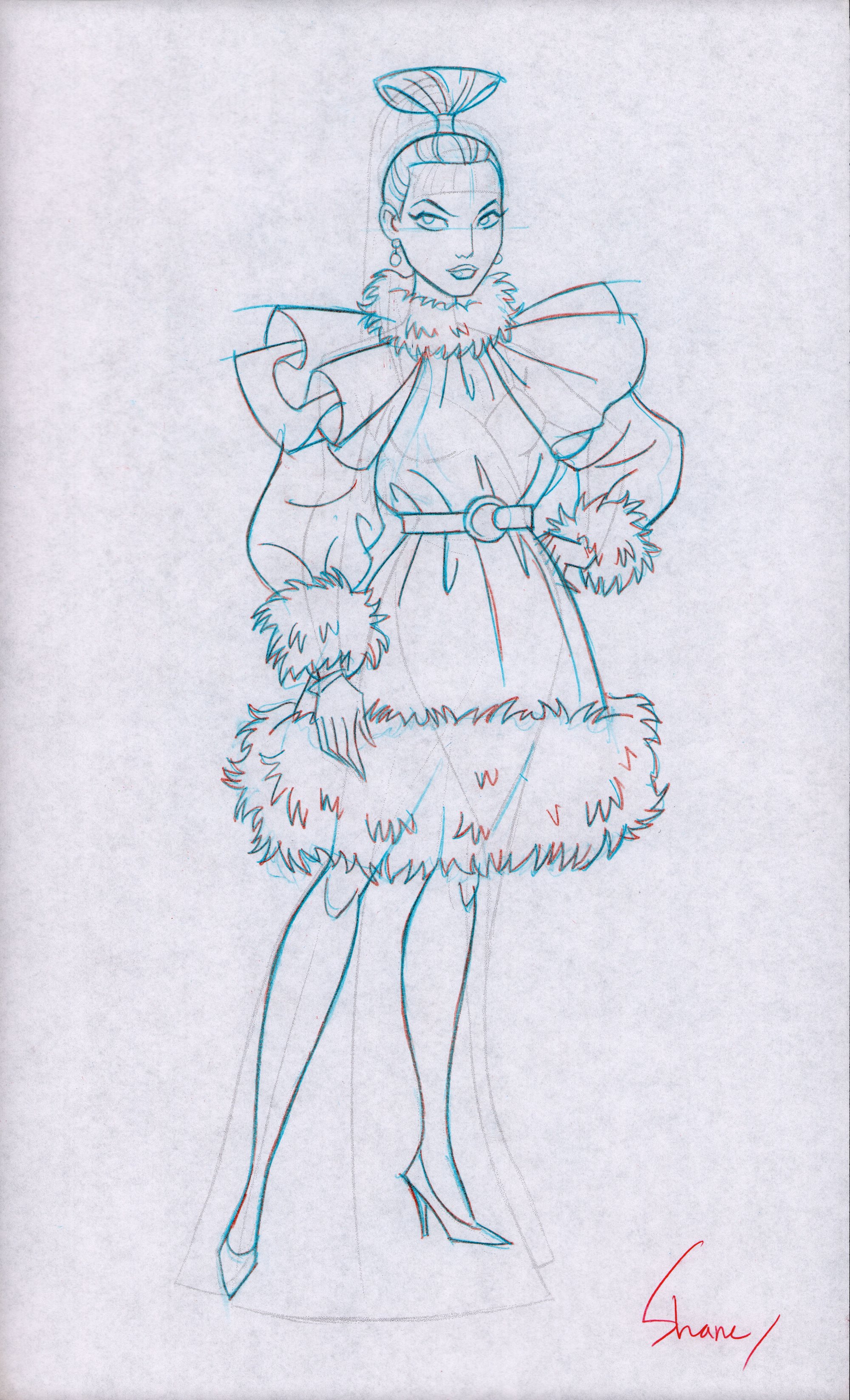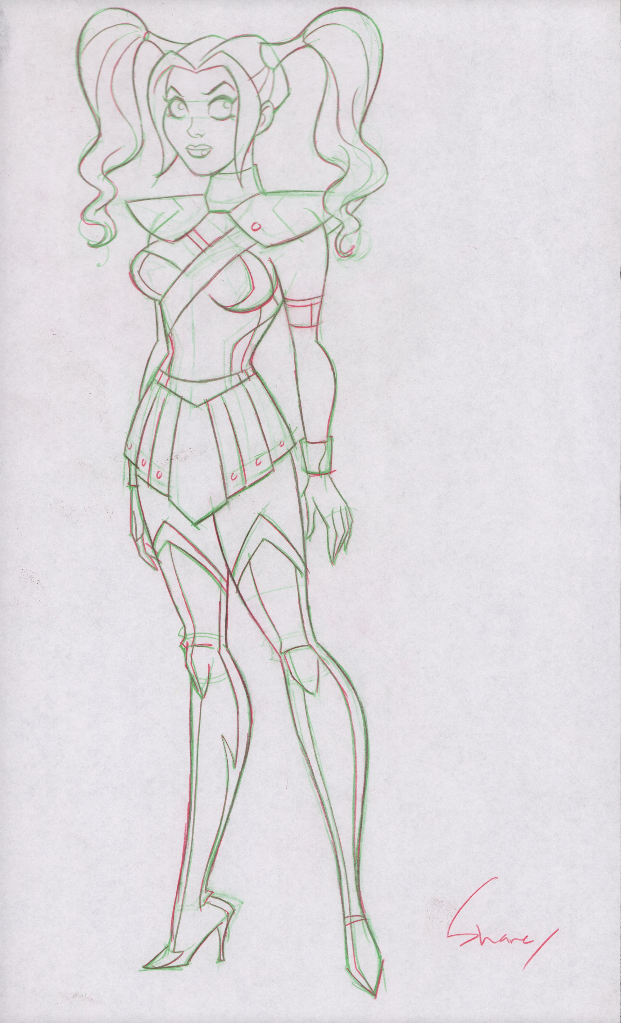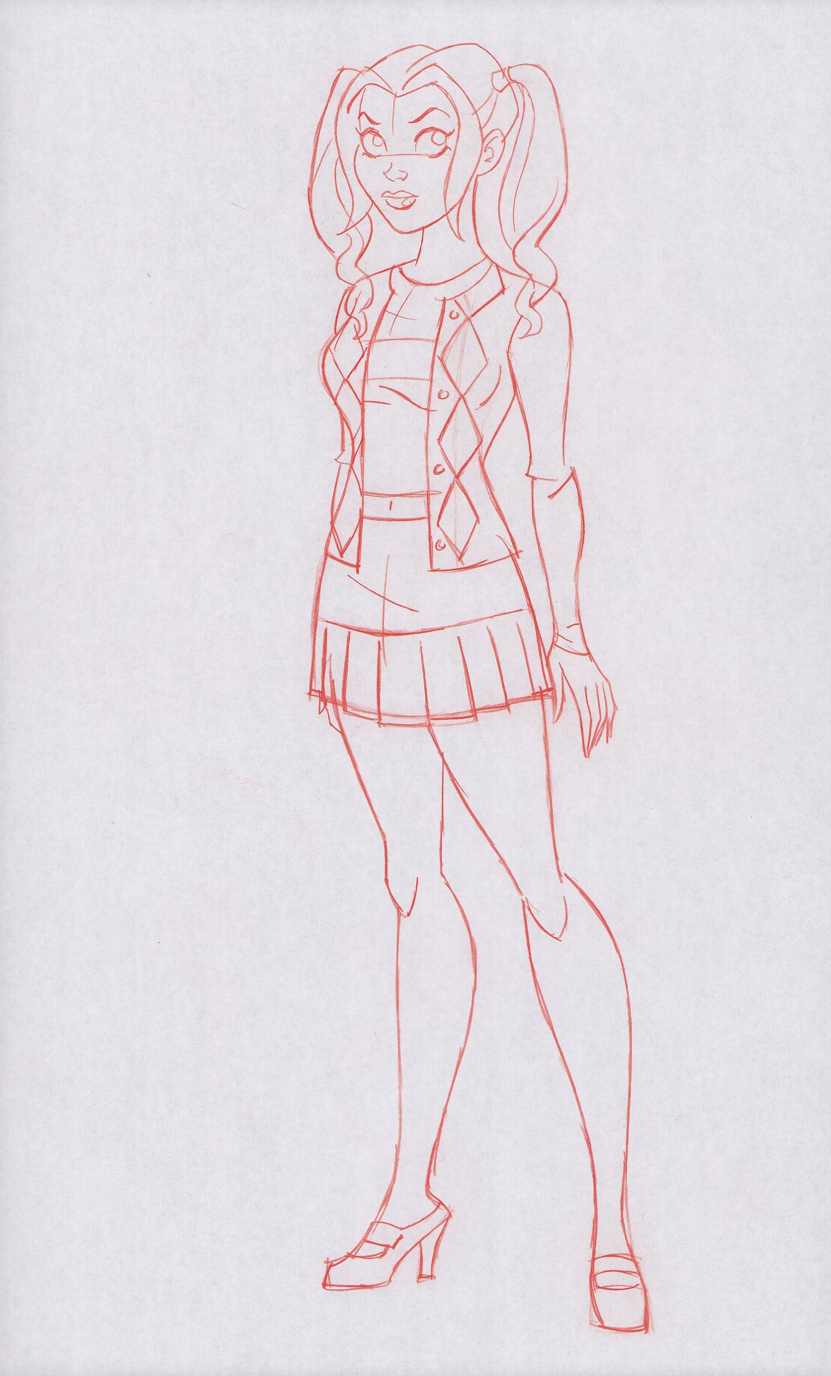 Group of five character designs from the Harley Quinn Animated Series. Colored pencil on letter and legal sized paper. Please indicate in notes to seller at checkout if you would like your art signed or personalized.