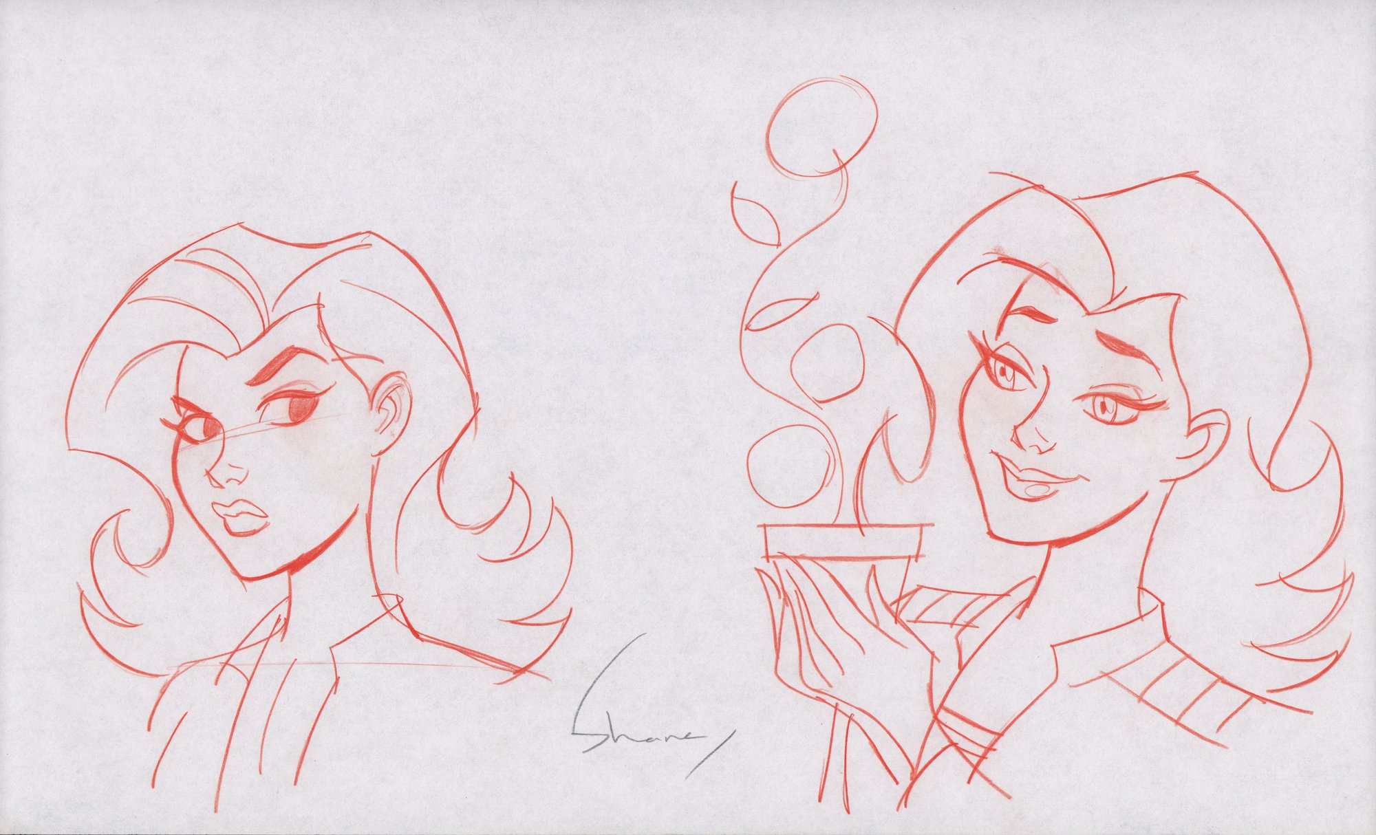 Group of seven character designs from the Harley Quinn Animated Series. Colored pencil on letter and legal sized paper. Please indicate in notes to seller at checkout if you would like your art signed or personalized.